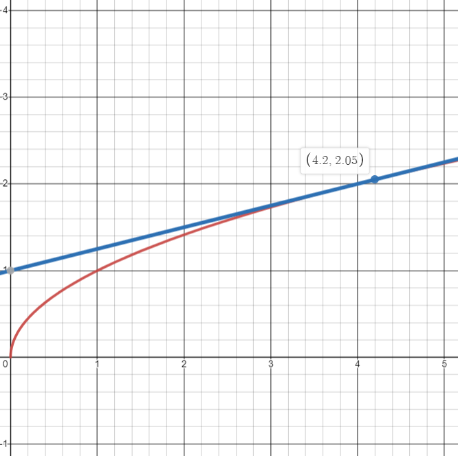 x= 4 일 때의 선형 근사를 위의 예제에 대해 풀어보자